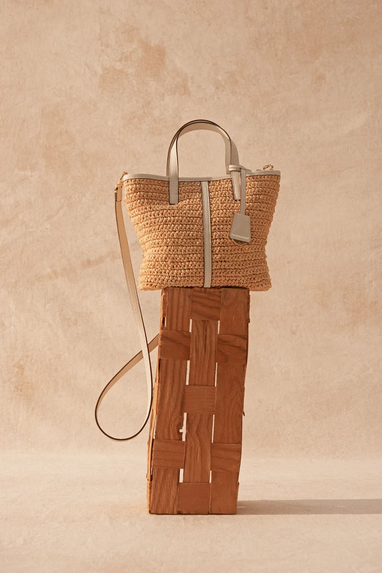 また、オンライン限定で発売されたばかりの新作「ラフィアリゾートコレクション」が、実店舗にて⼿に取れる唯⼀の場となる。選び抜かれたラフィアの葉を丁寧に乾燥し、熟練の⼿仕事で編み上げられた、⾵のように軽やかなラフィアの美が息づくコレクションになっている。