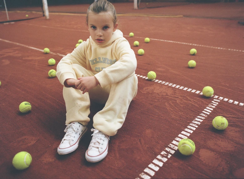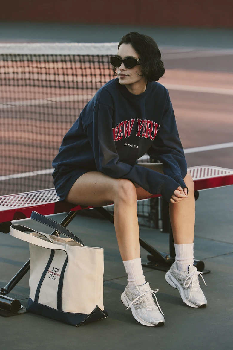 展開されるアイテムは、ブランドを象徴するロゴをあしらったアイテムが並び、コットンフリース素材を用いたフーディーやスウェットやTシャツなど、柔らかく快適な着心地と<Sporty & Rich>ならではのヴィンテージライクな風合いが魅力である。