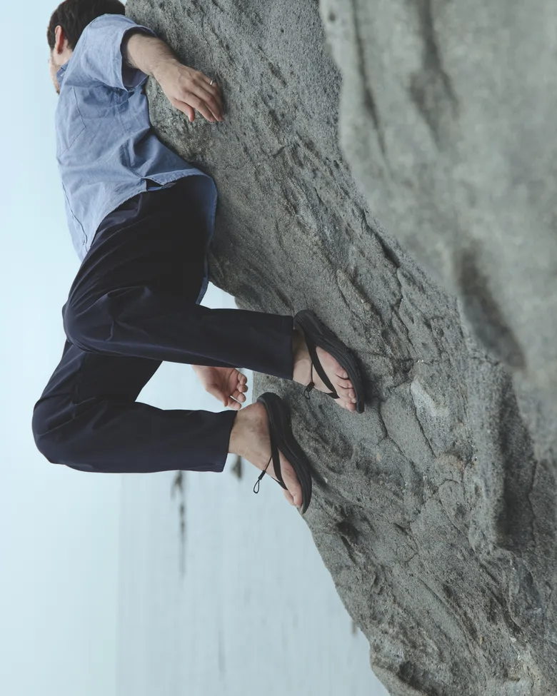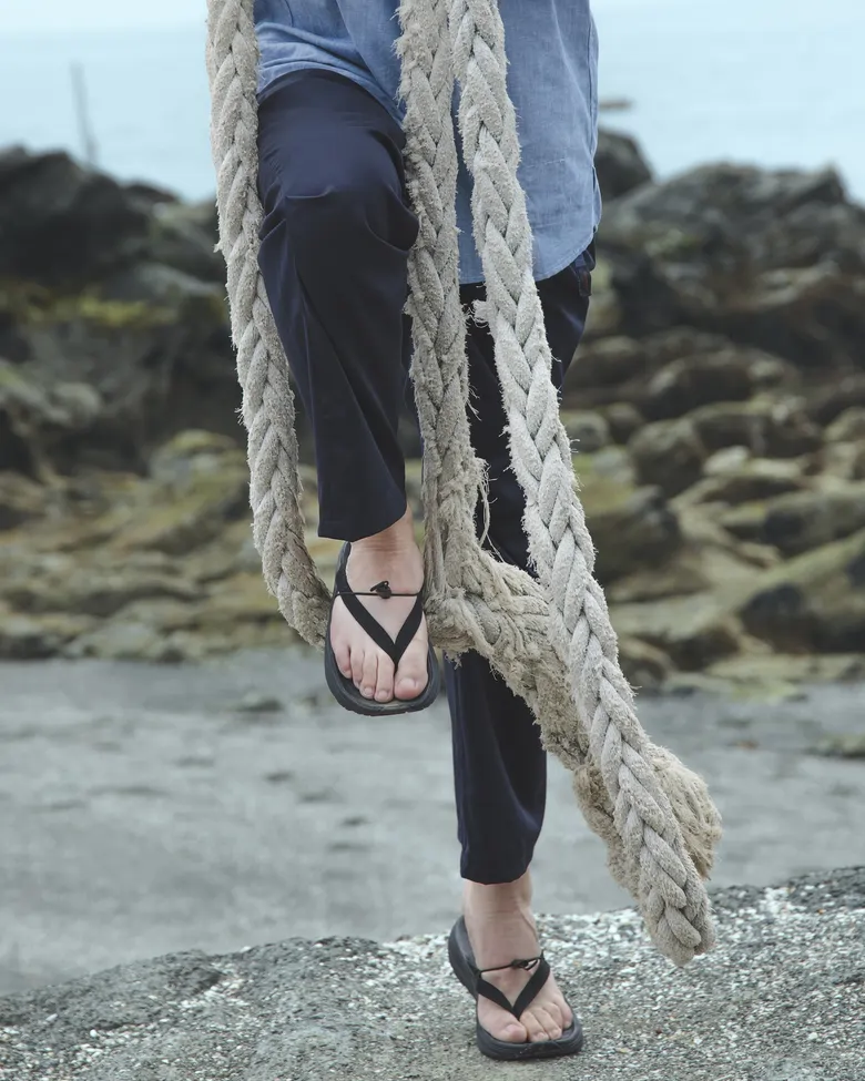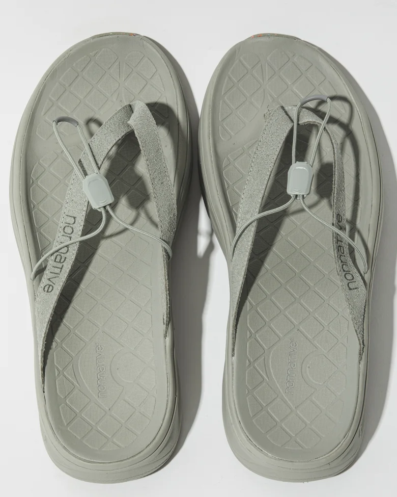 今回のコラボレーションでは、<nonnative(ノンネイティブ)>がデザインを手掛けた完全別注モデルのトングサンダル「PWANI(プワニ)」が登場。スリムに設計されたトング部分には、柔らかくしなやかなナチュラルスウェード素材を使用。中央に配されたドローコードが甲部分をしっかりとホールドし、コードストッパーによってフィット感の調整も可能だ。