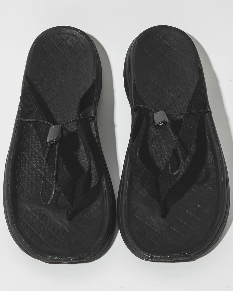 カラーバリエーションは、<nonnative>のSS2025コレクションのテーマカラーに合わせたKHAKIとBLACKの2色。洗練されたワントーンのカラーウェイと細部まで追求された機能性が融合した、全く新しいリカバリーサンダルが誕生した。