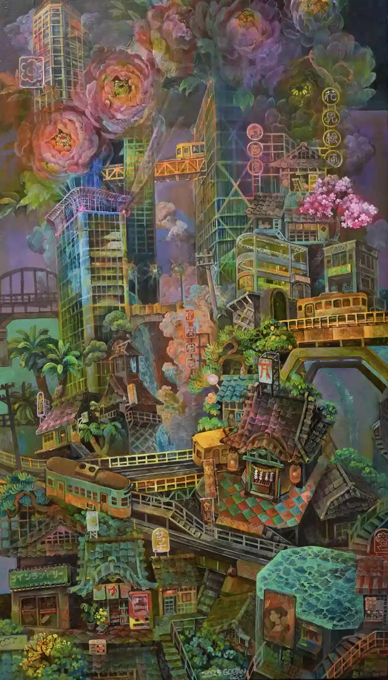 人物や動物をグラフィカルに描いた作品から、緻密な描写、抽象的表現に至るまで、バラエティ豊かなアートが揃う。出展作家には、SOMETA、マツダケン、村山大明らが名を連ね、例えばSOMETAの「untitled」では、現代的な視点で描かれた少女のポートレートが印象的で、マツダケンの「水先案内人」や村山大明の「脈動する惑星」では、緻密な描写が“動き”を静謐に閉じ込めている。