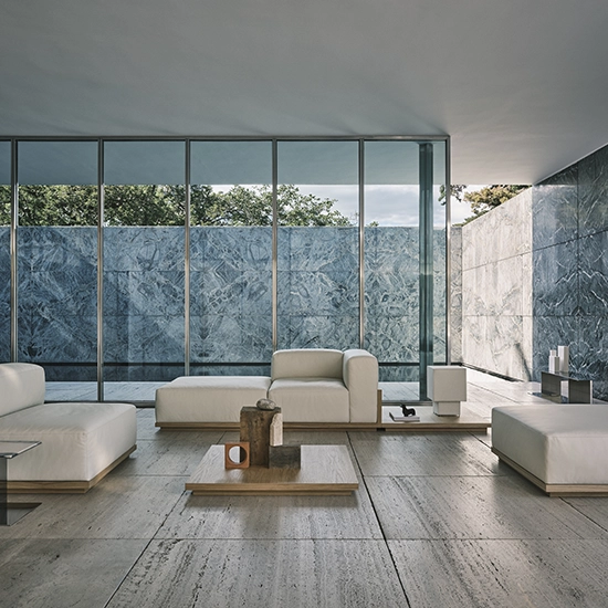 また、穏やかな佇まいで空間に落ち着きをもたらす「DAYBED 02」や、贅沢なレザークッションで包み込むような座り心地を実現する「LOUNGE CHAIR 03」も展開。加えて、建築的フォルムとミニマルな彫刻性を併せ持つ「COFFEE TABLE 02」、繊細な光を放つスポットライト「LAMP 03」などがラインアップしている。