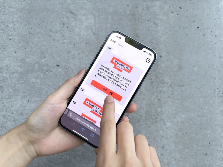 来場者は、提示される問いに対して自らの答えを会場や特設サイトで発信できる仕組みもあり、他者の視点に触れることで、人や状況によって答えの異なる「そのとき」を見つめる契機となる。答えの多様性こそが、防災というテーマの本質を物語っている。