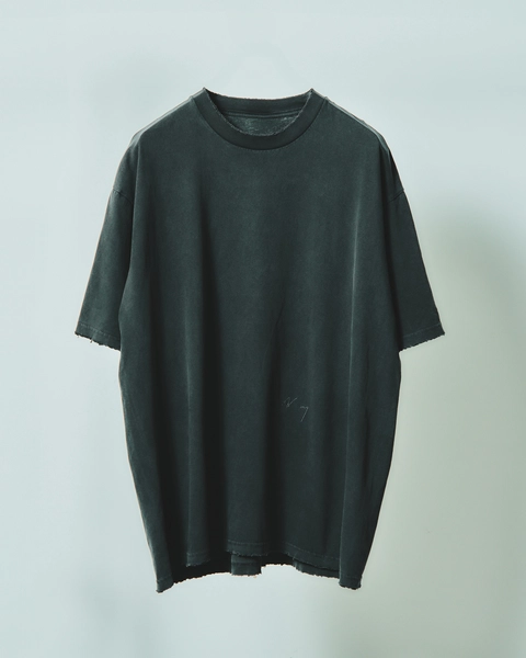 Tシャツにはアイコニックなブランドロゴが裾に刺繍されており、こちらも細部にまでこだわった加工と重ねた色彩により、経年変化が楽しめる一着となっている。