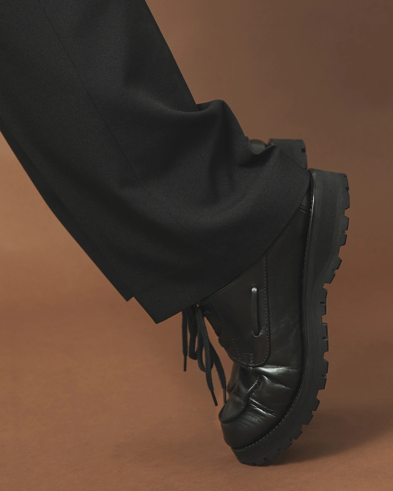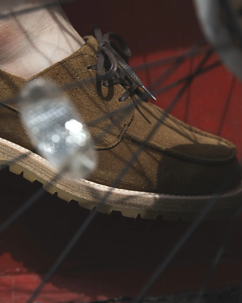 9年ぶりとなる本コラボレーションでは、新作としてオリジナルデザインのUチップシューズが発売される。全天候型とすべくGORE-TEXブーティが採用されている。タンやサイドパーツにスポンジフォームの芯材を使用することで足当たりに配慮するなど、機能面と履き心地を両立させたモデルである。シンプルなデザインの中で、サイドの飾り紐、踵のつまみ縫いがアクセントとなっている。アウトソールにVibram®を組み合わせたソールユニットは、ボリュームを持たせてカジュアルな印象に仕上げつつ、グッドイヤーウェルト製法を採用することで、クッション性を備え、履き込むほどに足にフィットす。端る正な印象を与えるスムースレザーのBLACKと、カジュアルなスウェードのCOLA BROWN。それぞれに個性が光る2つのカラーが展開される。