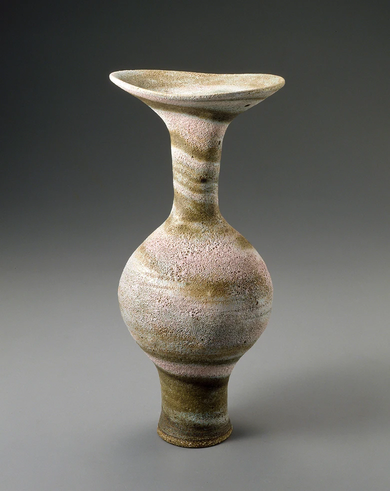 ルーシー・リー《溶岩釉スパイラル文花瓶》1978年頃、陶器、茨城県陶芸美術館