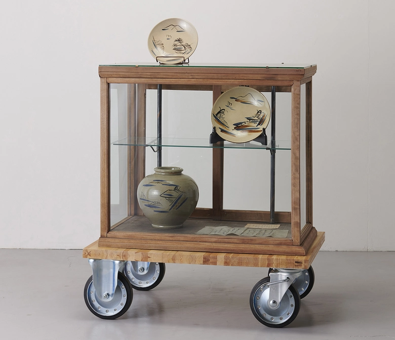 増子博子《移ろう景色皆川マスの絵付けより》2020年、陶器・手紙・ガラスケース、個人蔵 撮影:吉田健太郎