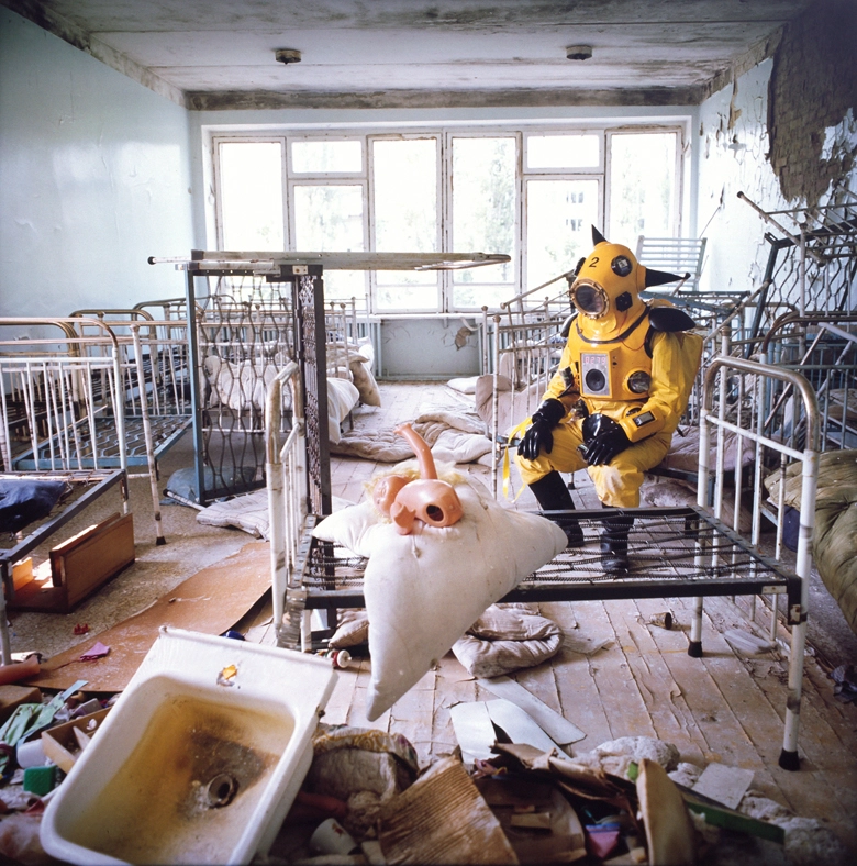 ヤノベケンジ《 アトムスーツ・プロジェクト:保育園1・チェルノブイリ》 1997年 ライトボックス、カラー・トランスペアレンシー 120 x 120 x 21 cm 広島市現代美術館蔵 © Kenji Yanobe. Courtesy of Hiroshima City Museum of Contemporary Art.