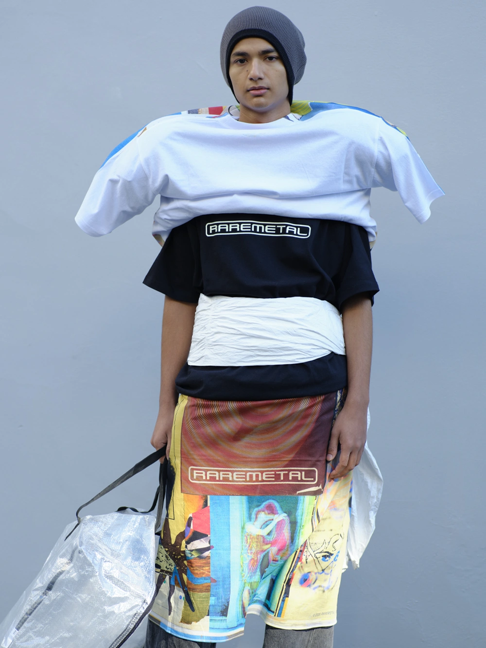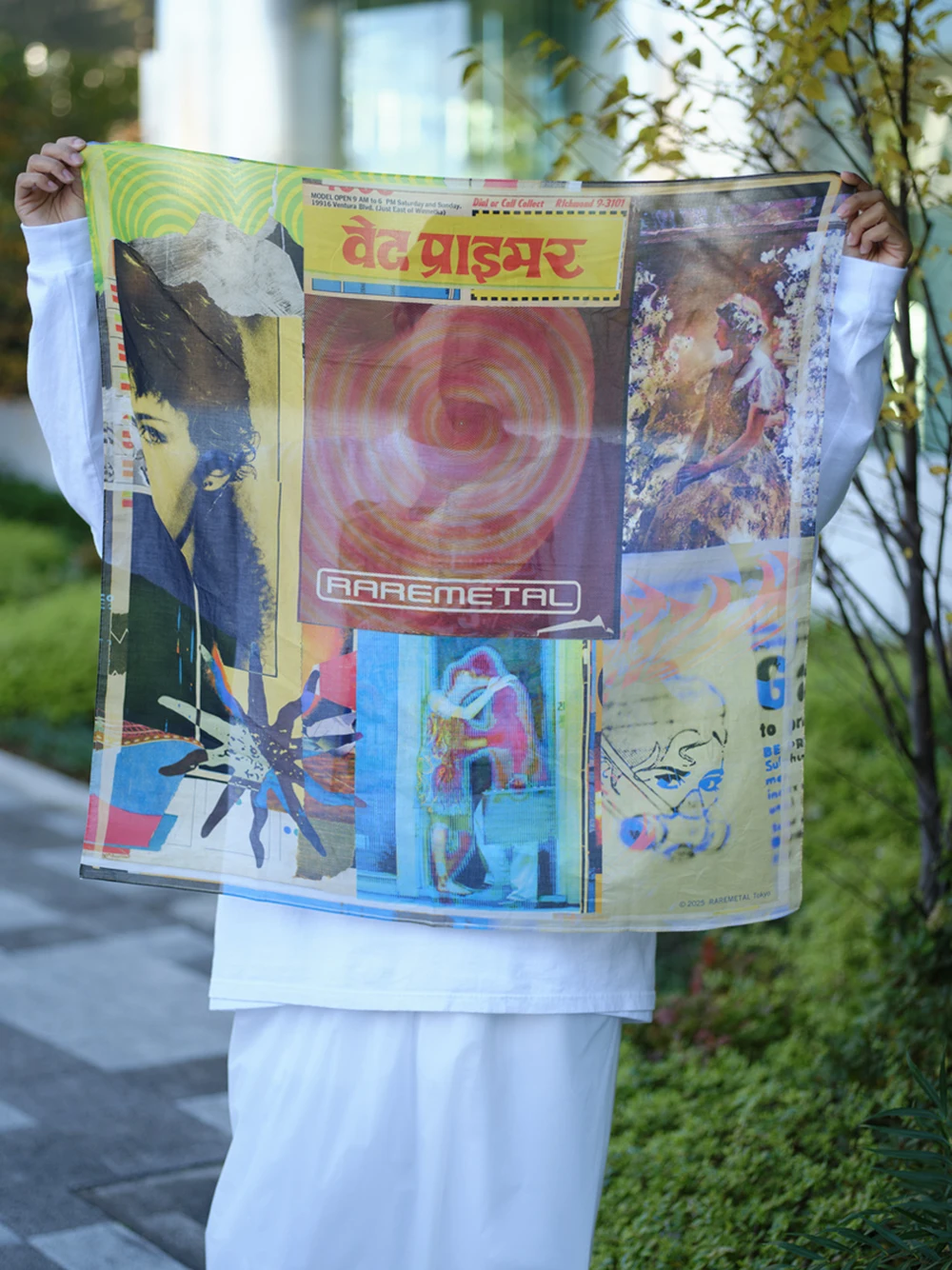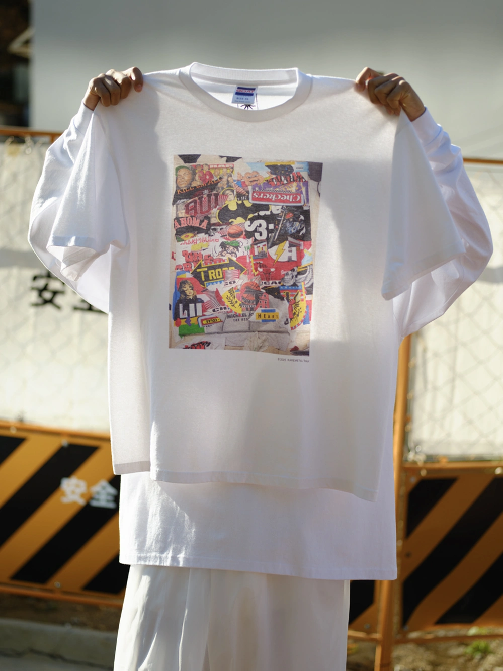 <RAREMETAL(レアメタル)>は、“地殻中の存在量が少ない非鉄金属”を意味する言葉を冠し、アパレル、アート作品、テキスト、印刷物といった多様な表現が交差する、永戸らしい実験的なコラージュプロジェクトである。今回の展示では、アーカイブ作品のグラフィックをマクロレンズで切り取ったイメージを落とし込んだアパレルや、生活空間に寄り添う家具・雑貨作品を展開する。