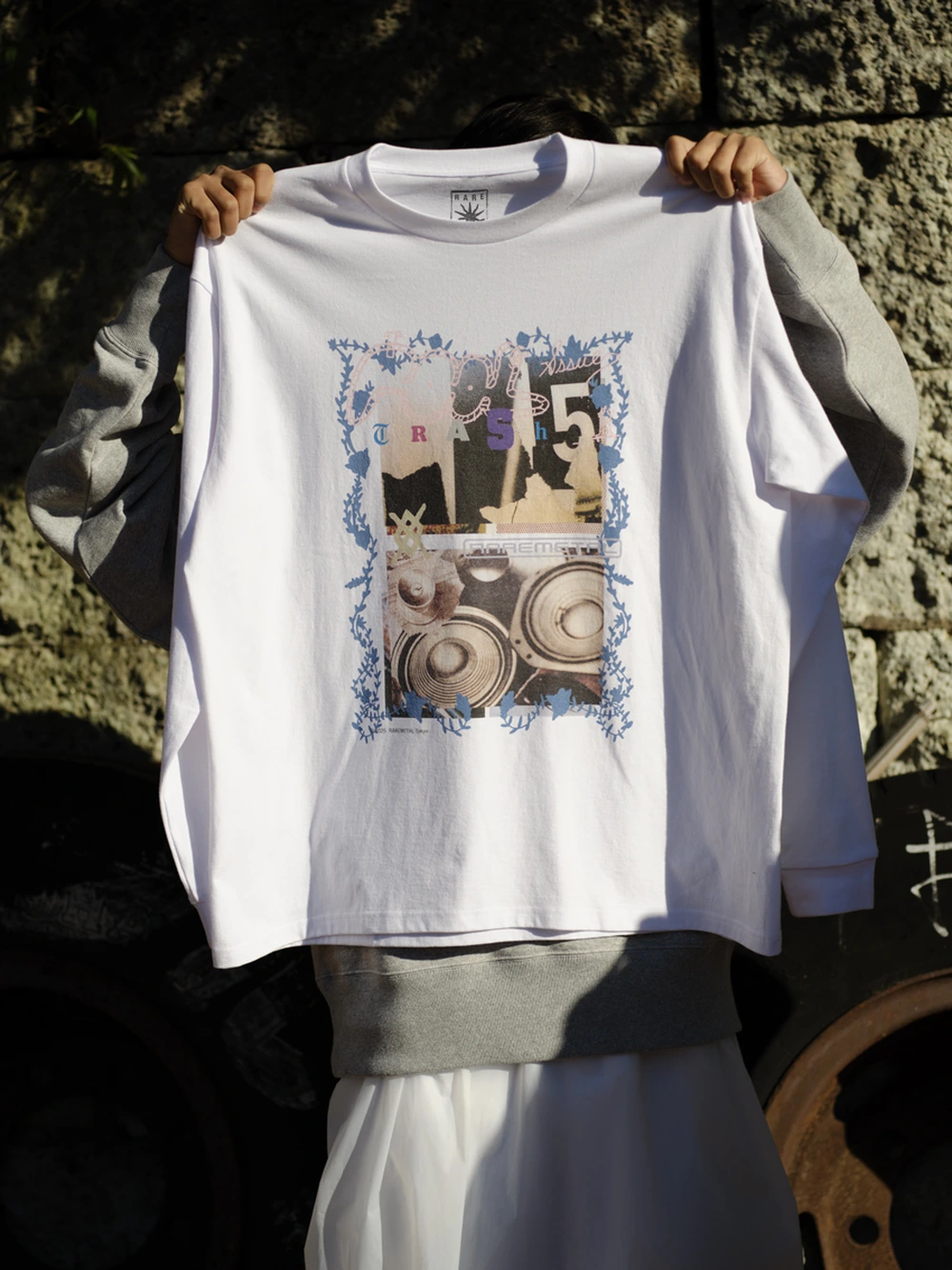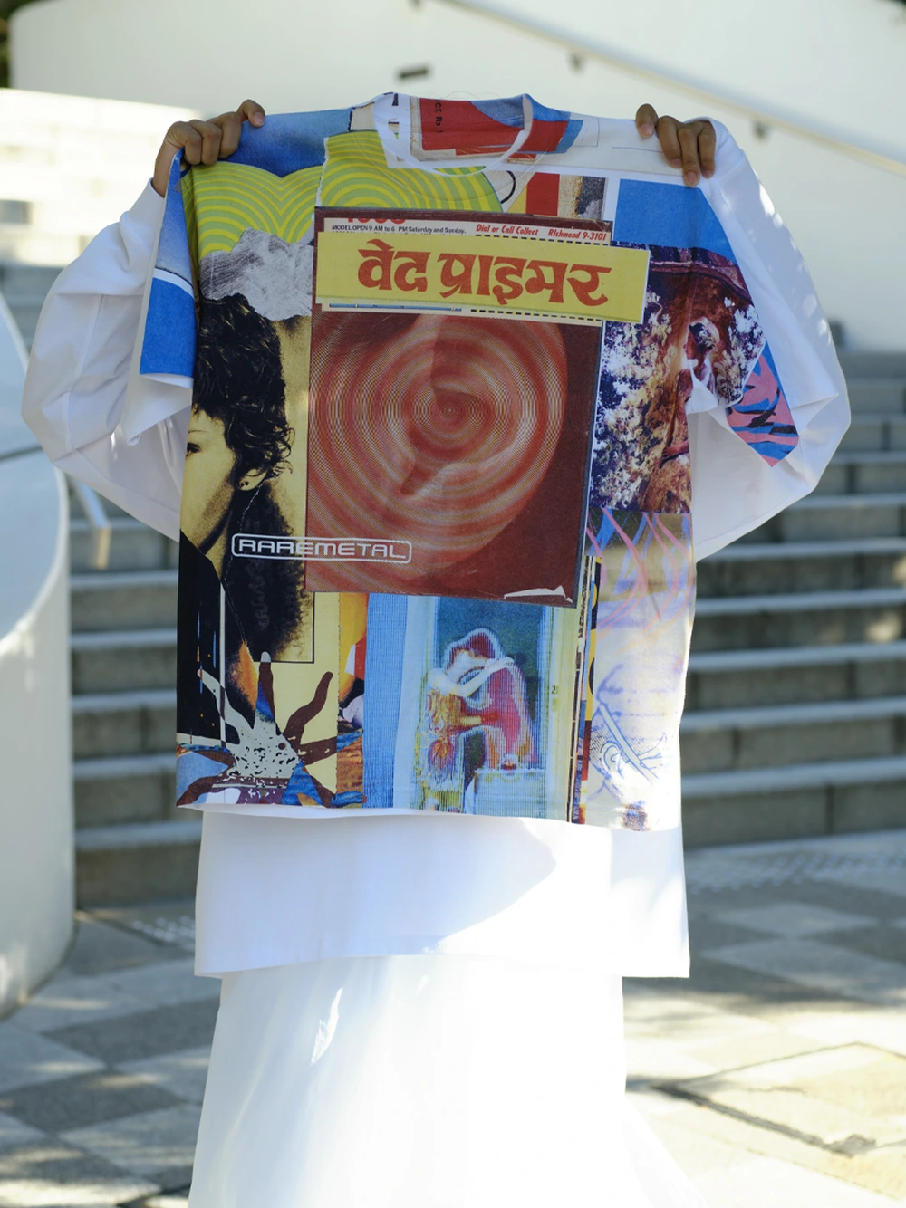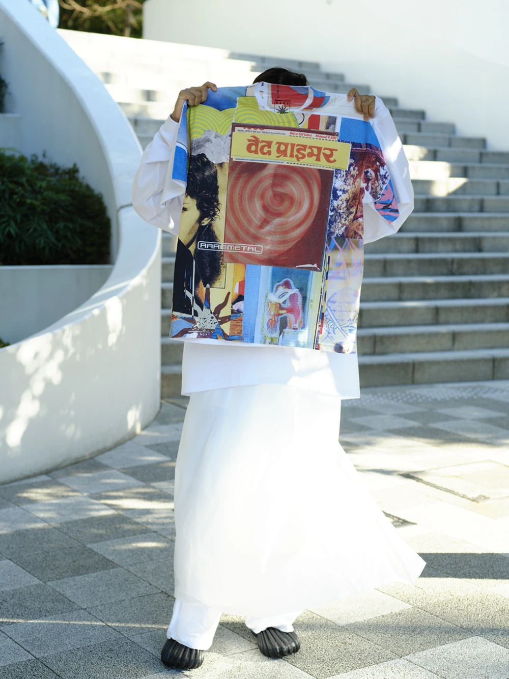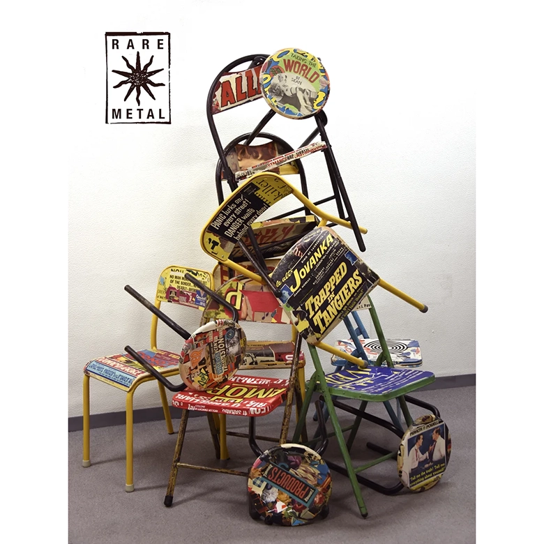 <RAREMETAL(レアメタル)>は、“地殻中の存在量が少ない非鉄金属”を意味する言葉を冠し、アパレル、アート作品、テキスト、印刷物といった多様な表現が交差する、永戸らしい実験的なコラージュプロジェクトである。今回の展示では、アーカイブ作品のグラフィックをマクロレンズで切り取ったイメージを落とし込んだアパレルや、生活空間に寄り添う家具・雑貨作品を展開する。