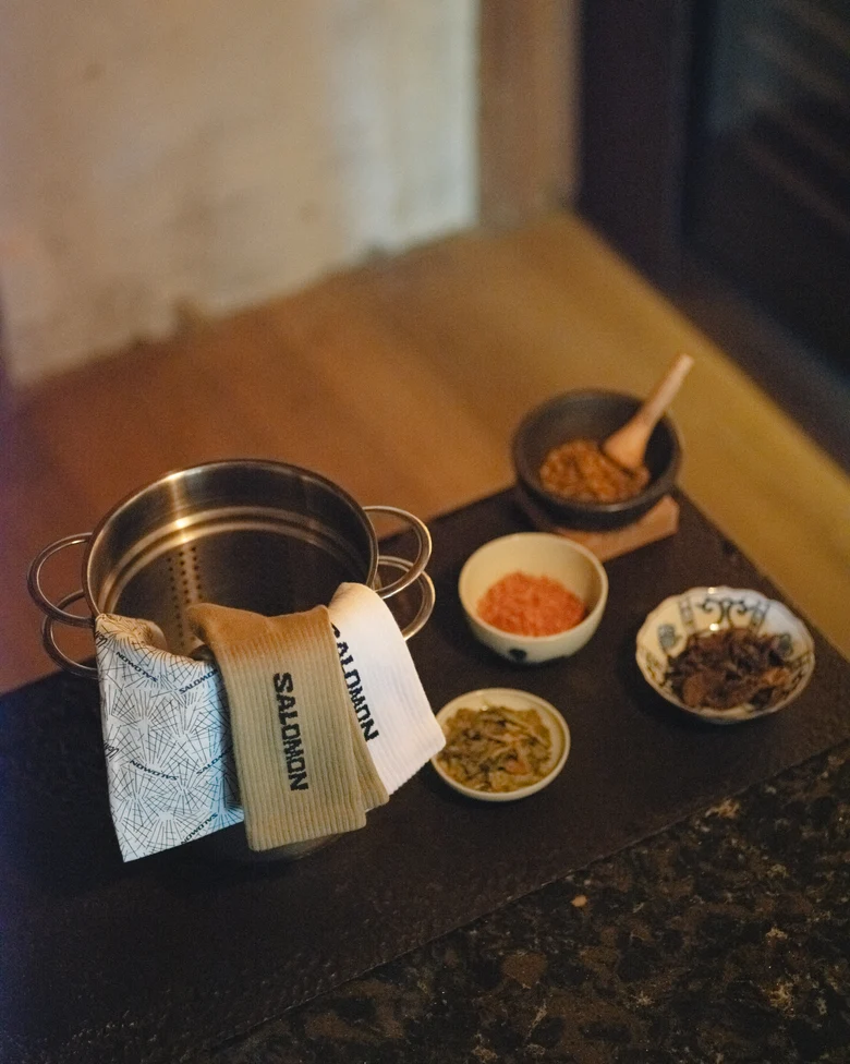 本イベントは、エースホテル京都が継続的に展開している人気ワークショップシリーズ「SLOW SERIES」の一環として開催されるもので、Uchiが監修を務める。松の葉から着想を得たグラフィックデザインを落とし込んだオリジナル手ぬぐいや、<Salomon Sportstyle(サロモン スポーツスタイル)>の靴下を、参加者自身の感性で草木染めできる内容となっている。