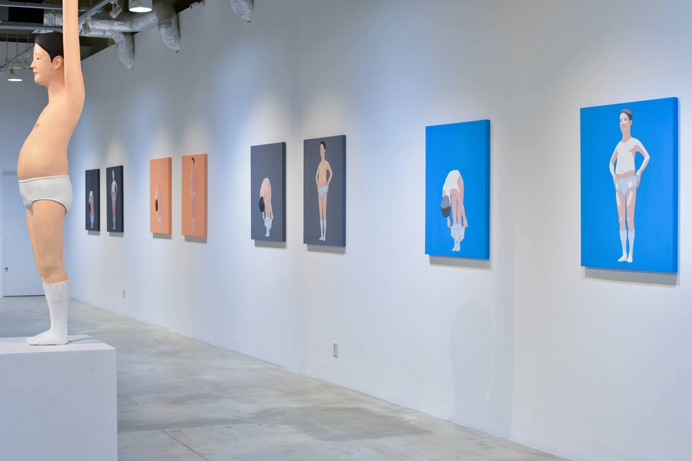 代表作となる“清潔な人”シリーズでは、世間の目から解放された中年男性が自宅でリラックスする姿をユーモラスに造形。その造形には、滑稽さや不安、恐れ、喜怒哀楽といった感情が複雑に重なり合い、どこかで微かな希望の光が差し込むような余白がある。