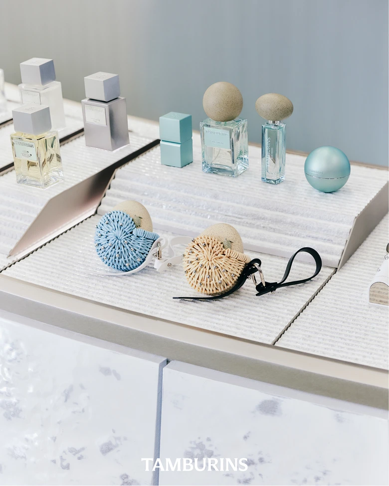 「Egg Perfume BLUE HINOKI」と「Egg Perfume Rattan Wear」は、7月4日からTAMBURINS渋谷フラッグシップストア限定にて購入することができる。また、渋谷フラッグシップストアでは、特別な限定特典も用意されている。来店のうえ、TAMBURINS LINE公式アカウントを新たに友だち追加した方には、「Sand Dome Mini」をランダムでプレゼントされる。10,000円(税込)以上購入した方には「Sand Dome Large」もプレゼントされる。