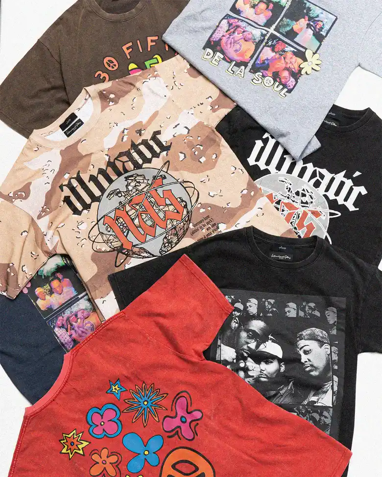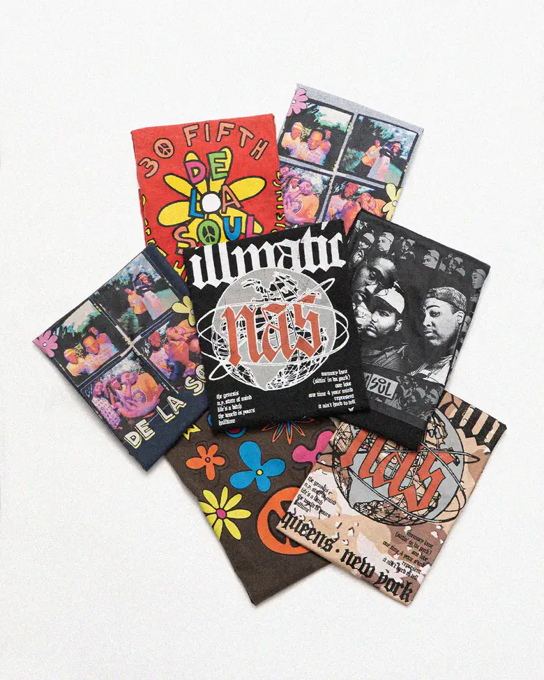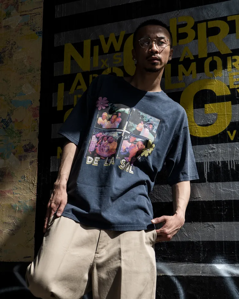 アメリカのヒップホップを牽引してきた「ナズ」と「デ・ラ・ソウル」のアイコニックなイメージを捉えたインパクトのあるグラフィックを落とし込み、計4型が展開される。全てのアイテムにはパウダー加工を施し、ヴィンテージTシャツのような独特の風合いと着心地が実現されている。音楽業界のリーディングカンパニーである「UNIVERSAL MUSIC」と、独自の視点でファッションを発信する<International Gallery BEAMS>。異業種でありながら、それぞれのカルチャーを尊重し、新たな価値創造を目指す2社によるスペシャルなコラボレーションになっている。