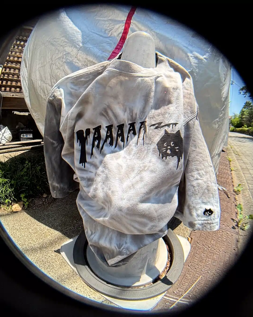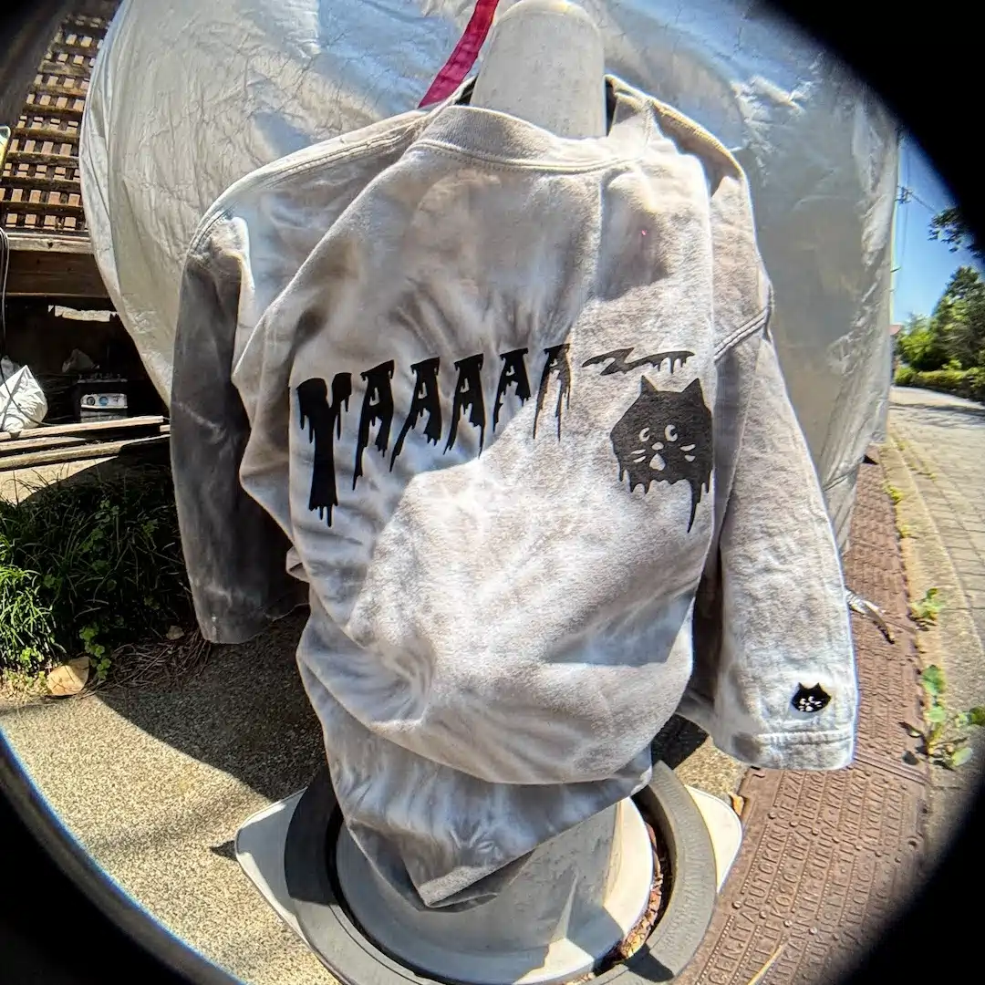 お買い上げのNYA-のTシャツにYUKIと一緒にタイダイ染めを施し、オリジナルの1着を作ることができる。