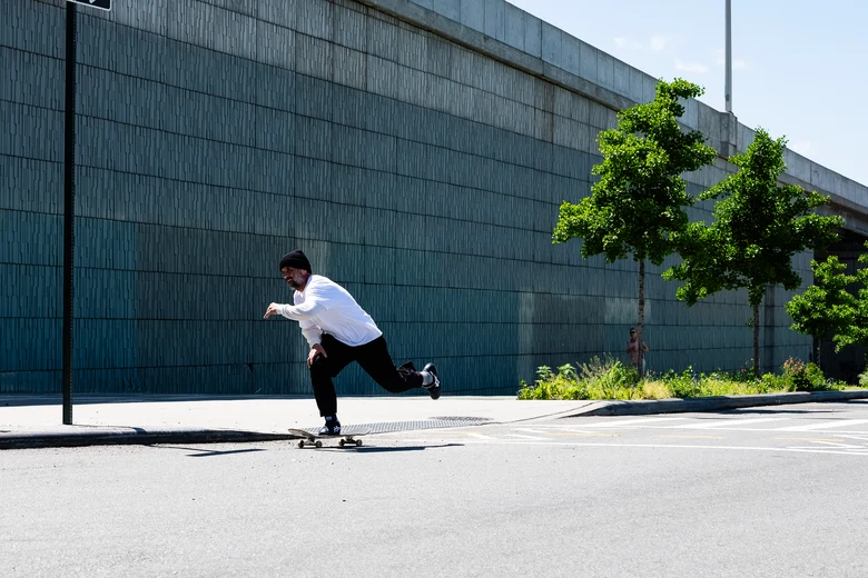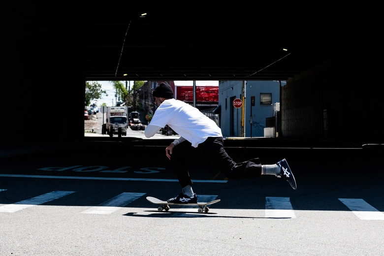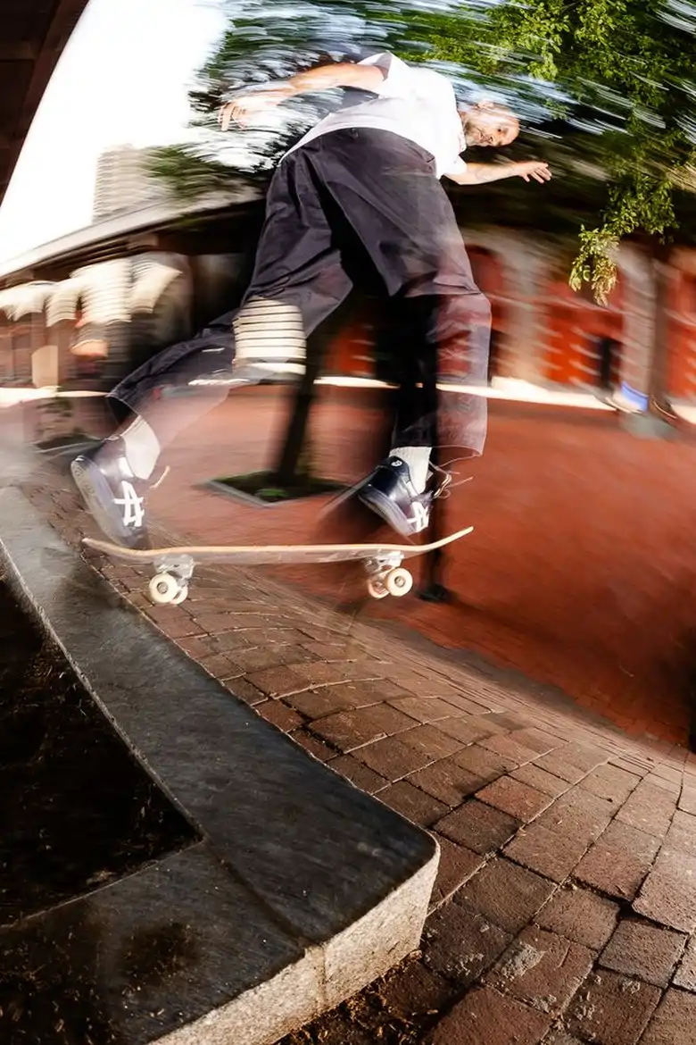 Iannucciは「はき心地は優雅で、ぴったりとフィットしつつもボードの感触を的確に伝える」と語り、耐久性と操作性のバランスを重視してデザインしたという。アッパーは耐久性のあるスウェードとレザーの二層構造、ダブルステッチ、パッド入りシュータン、通気性のあるメッシュパネル、ヒールのトリプルステッチ、グリップ力を高めるオリジナルパターンのラバーアウトソールなど、滑走時の安定性と快適性を高める仕様を備える。