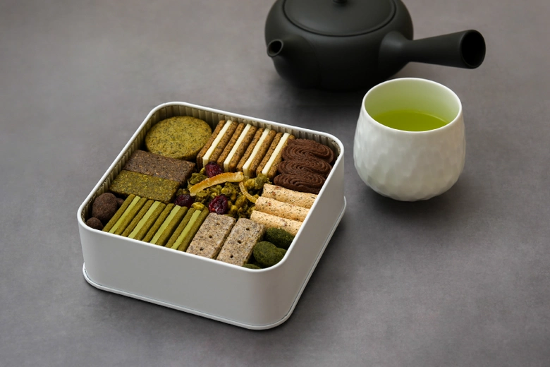 京都・宇治の有機茶園で育まれた茶葉をはじめ、こだわりの茶葉を用いた11種のクッキー。有機茶葉を贅沢に使用し、素材の持つ自然な香りと味わいを引き立てている。