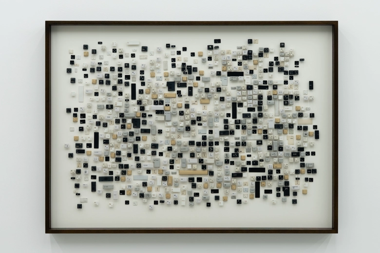Rose Salane. Resurfaces in the heart: a memory that lingers 心に蘇る 消し去れぬ記憶. 2025. Found computer keyboard pieces on mat, wood frame. 814 x 1118 x 550 mm (framed).
