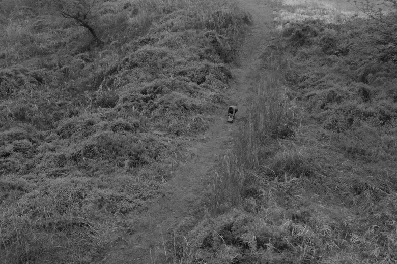 潘逸舟《わたしは家を運び、家はわたしを移す》2019 年 ダブルチャンネル・ヴィデオ(モノクロ、サウンド) 国立国際美術館蔵