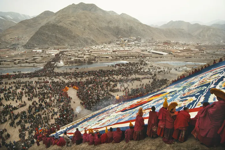 野町和嘉 「大祈願会で披露された巨大タンカ。甘粛省、中国」 1989年 © Kazuyoshi Nomachi