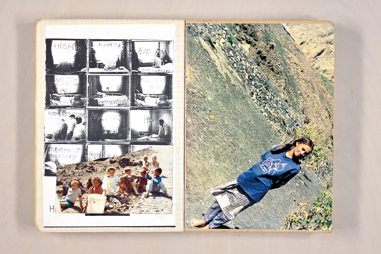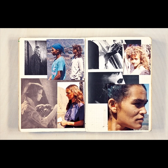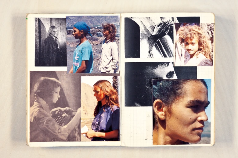『溶岩の家』の制作準備段階で編まれたスクラップブックには、絵画や写真、手紙、新聞記事、文学の引用、ポートレイトなど多様なイメージが静かに貼り重ねられている。コスタはこれを「視覚的シナリオ」と呼び、「映画が持ちえなかった皮膚の下の臓器」であり、「失われゆくものへの静かな詩」だと語っている。それは映像に先立って存在し、作品のトーンを決定づけた。これをもとに制作されたプリント群が、写真作品として展覧会で紹介されるのは今回が初めてとなる。