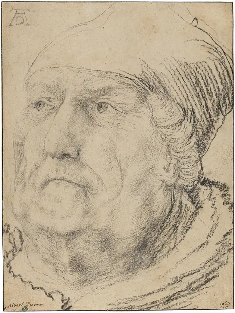 第3章:ドイツでは、デューラーの《三編みの若い女性の肖像》やグリューネヴァルトの《髭のない老人の頭部》などが光る。