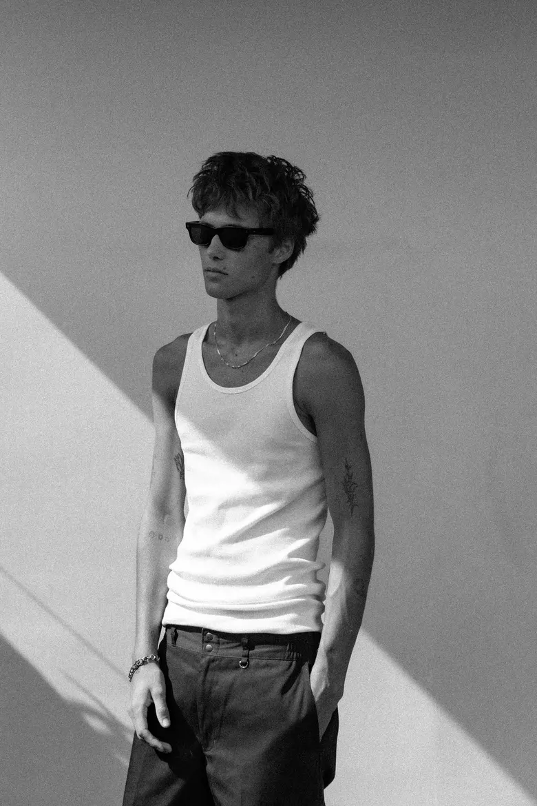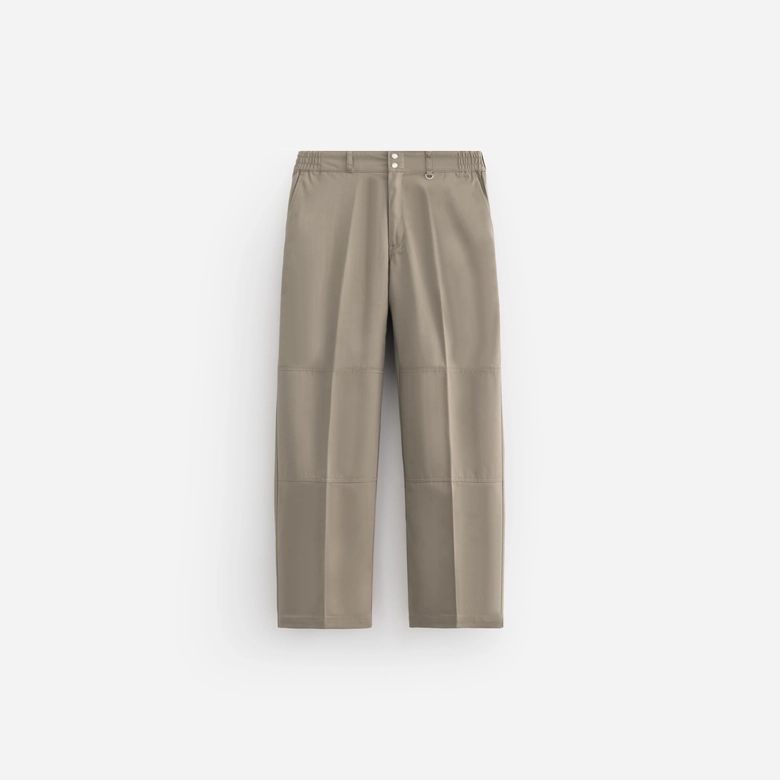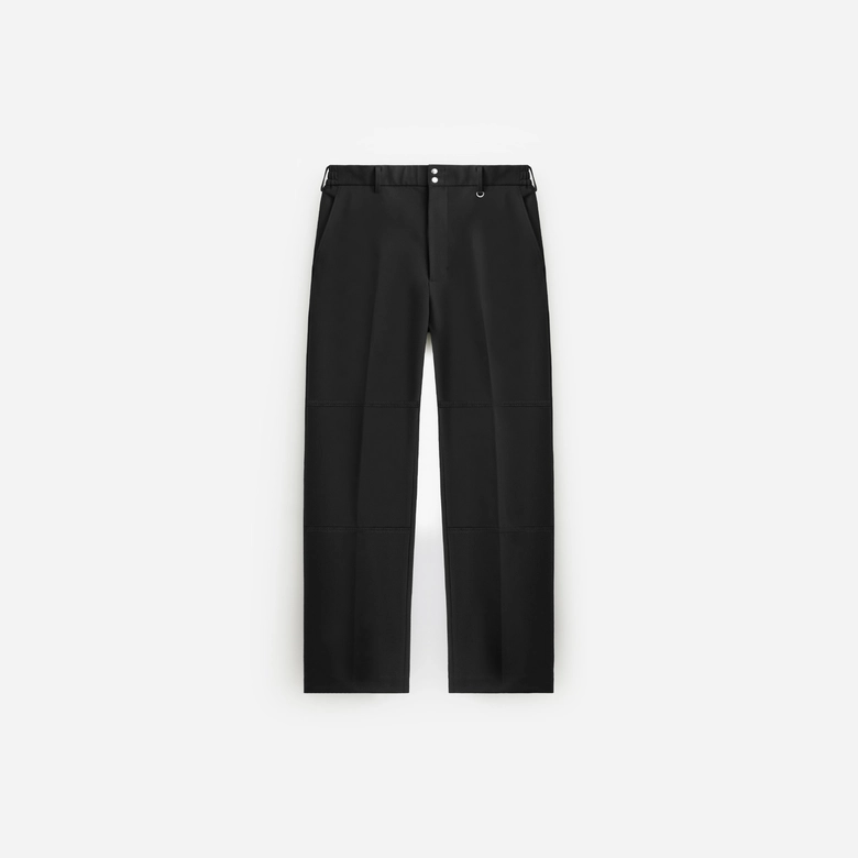 本アイテムは、ウエストバンドにダブルスナップボタンを採用し、両サイドにはゴムアジャスターを配してフィット感を高めた。また、フロントにはYKK社製最高級ジッパー「エクセラ」を採用し、左ループにはキーリングを配置。バックポケットにはスナップボタンを備え、裏地には両ブランドのロゴをリピートプリントした。さらに、背面右のスラッシュポケット下には2ブランドのロゴを配したスクエア型ネームをあしらい、ディテール全てにおいてクリスのこだわりが反映されている。こうした仕様により、上質でミニマムな印象に仕上げられている。キャンペーンLOOKはクリス自らがディレクションし、ロサンゼルスで撮り下ろされた。