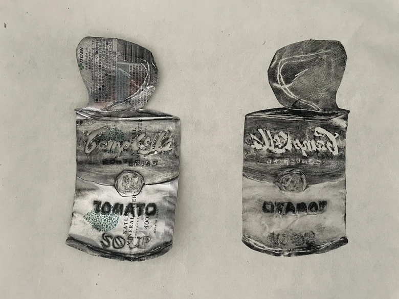 若木くるみ 《CAN ベルスープ》 2024 年 空き缶を用いた版画 作家蔵