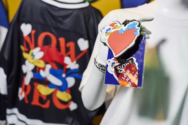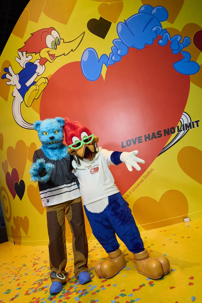 イベントのフィナーレを飾るスペシャル・ファッション・ショーには、どデカいサングラスに、特注の LOVE HAS NO LIMIT のチャリティ Tシャツを身につけた超COOLな装いの「DJ ウッディー・ウッドペッカー」と、同じくお揃いで色違いのTシャツを着た「ウィニー・ウッドペッカー」がエンターテイナーたちを引き連れて登場。