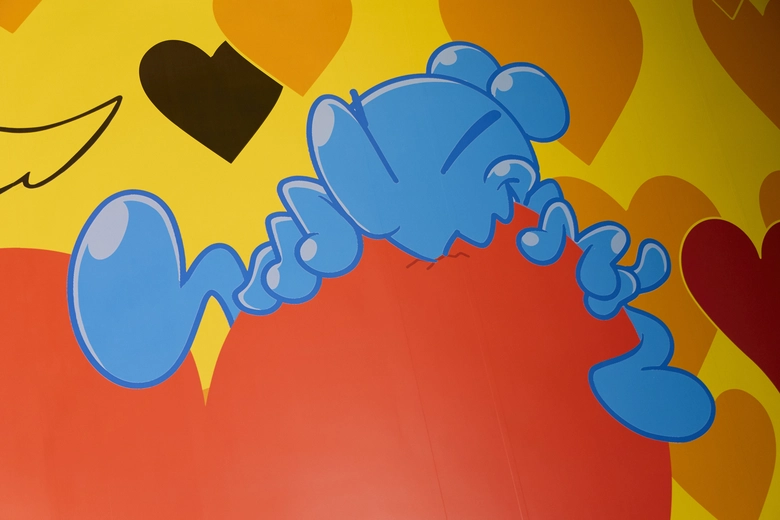 なかでも来場者の目を引いたのが、高さ約5メートルにも及ぶウォールアート。今回のコラボレーションのメインビジュアルとなる巨大なハートロゴが描かれ、その圧倒的なスケールと存在感は、メディア関係者をはじめ多くのゲストを魅了した。