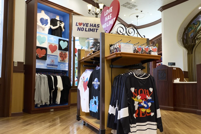 ユニバーサル・スタジオ・ジャパンは、CSR スローガン「LOVE HAS NO LIMIT」で目指す“子どもたちの笑顔あふれる未来づくり”を推進するプロジェクトの一環として、2024年8月より売上の一部を寄付する「LOVE HAS NO LIMIT チャリティTシャツ」の販売を開始。多くの人の賛同により、2024年末までの売上の一部の400万円を大阪府「子ども輝く未来基金」へ寄付している。パーク内外問わず、本チャリティTシャツを身に着け、ファッションを楽しむことが、より多くの子どもたちの笑顔につながる活 動として、多くの人が参加している。