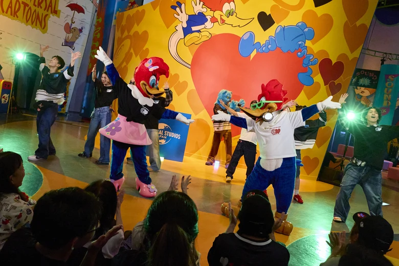 ショーの終わりには、「DJ ウッディー・ウッドペッカー」や「ウィニー・ウッドペッカー」、エンターテイナーたちとの豪華な記念撮影が実現した。記念撮影の後にはフォトグリーティングも実施。来場ゲストもウォールアートの前で、思い思いのポーズでエンターテイナーたちとのフォトセッションを楽しんでいた。
