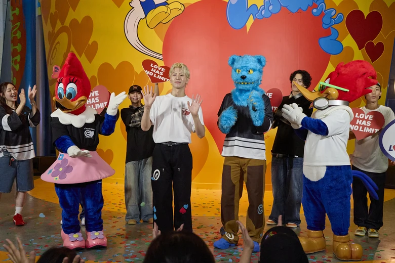 長谷川さんは、モデル撮影以来の「DJ ウッディー・ウッドペッカー」との再会に嬉しそうな様子をみせ、「ウッディー・ウッドペッカーがすごくちょっかいをかけてきたり、僕が手をつなごうとしているのに手をつないでくれなかったり、たじたじでした!」と撮影時の裏話を楽しそうに語った。