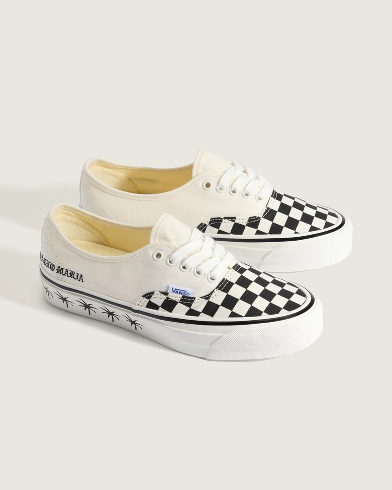 本作では、<Vans>の定番モデル「Premium Authentic」をベースに、Snow WhiteとBlueの2カラーで展開。ヒールカウンターには<WACKO MARIA>のブランドロゴを刺繍し、サイドウォールにはヤシの木のモチーフ、トゥ部分には象徴的なチェッカーボード柄が配されている。洗練されたリラックス感と自由な夏のムードを表現し、日中のカジュアルスタイルから夜の装いまで幅広く対応できるデザインに仕上がっている。