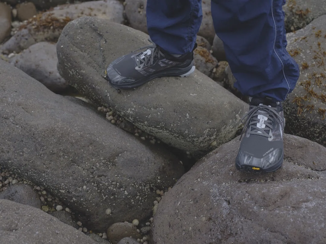 「Altra × and wander Lone Peak 9+」は、<and wander>が手掛けたオリジナルのグラフィックプリントやカラーリングを特徴としながら、Vibram® Megagripを搭載することで、険しい地形でも確実なグリップ力を発揮します。Lone Peakにグラフィックが施されるのは今回が初めてであり、両ブランドのクリエイティビティーにおける新たな一歩となる。