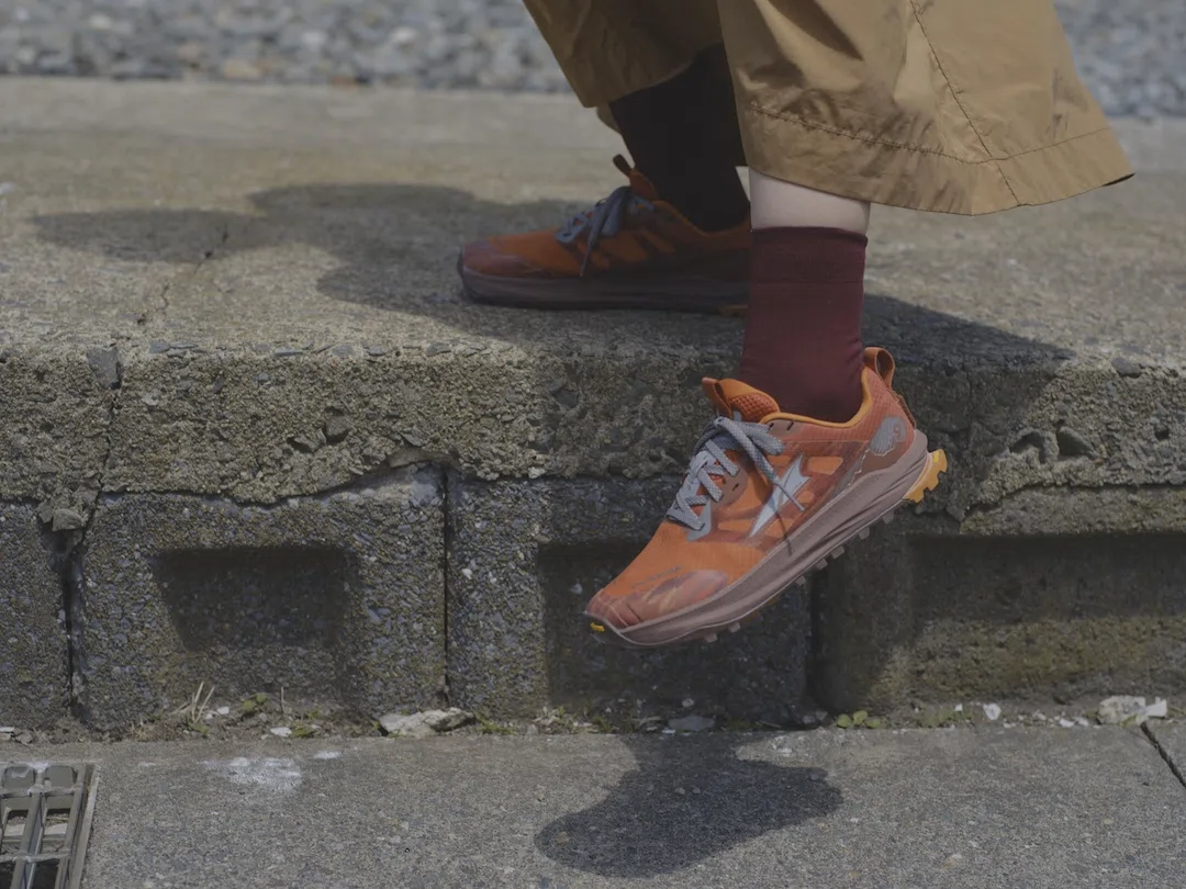 <ALTRA>は、「ナチュラルムーブメント」の哲学で知られており、ランニングにおけるパフォーマンスと快適さをサポートするフットウェアをデザインしている。<ALTRA>独自のFootShape™ Fitは、つま先を制限なく広げることができ、Lone PeakのZero Drop™プラットフォームは、かかとからつま先まで均一なソールの厚みを維持する。この2つの要素が相まって、足の可動性を高め、自然な体の動きをサポート。