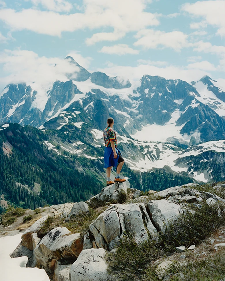 本作は、アクション・ブロンソンが独自に解釈したMade in USAのモデル「992」をベースに、ニュートラルなブラウンスエードにフレイムオレンジのメッシュを大胆に重ねたウォームカラートーンが印象的な一足。さらに、コバルトブルーのシュータンやスモーキーブラックのアウトソールが足元に深みと力強さを加えている。ディテールには「Baklava(バクラヴァ)」のロゴやストライプ柄のシューレースなど、アクション・ブロンソンならではの世界観が表現されている。