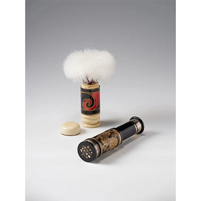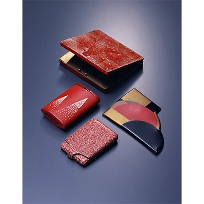 さらに外出先での身だしなみを整えるため、化粧道具も小型化していく。パウダー入りのコンパクトやスティック型の口紅は、持ち運びやすさと優美さを兼ね備え、日常の所作にまでアール・デコの感性を息づかせた。