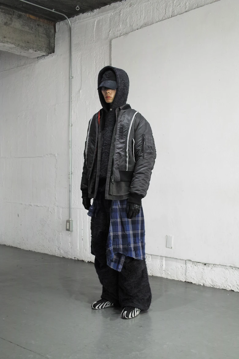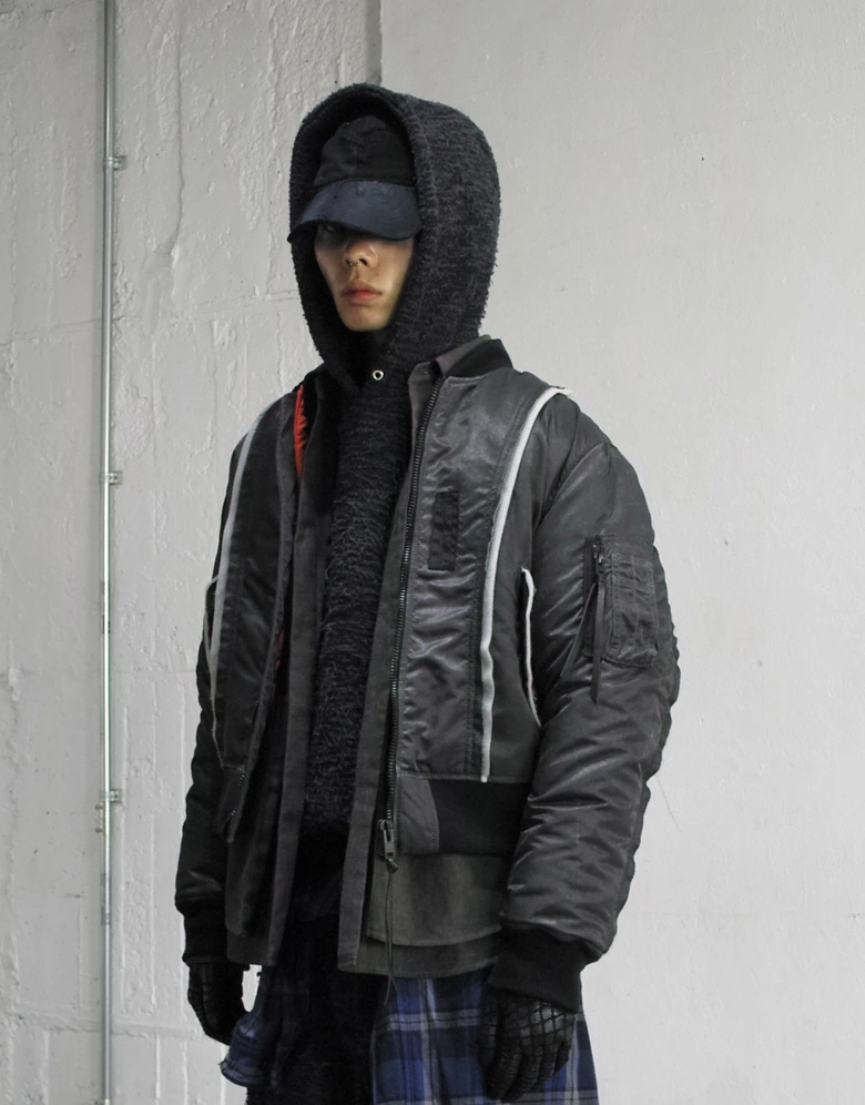 “CONCEPTUAL”コレクションは、よりアナログな手法を用いた手作業工程が特徴。デザイナーが裁断したレザーを縫い合わせて生地を作り、キャリア54年の職人が縫製・組み立て、そこへデザイナーが更なる手仕事を加え、最後は熟練の加工師が一点ずつ表情を出す。完成までに幾通りもの工程を重ね、着用を重ねる中での経年変化までを「経年美」としてデザインに落とし込む姿勢が貫かれている。
