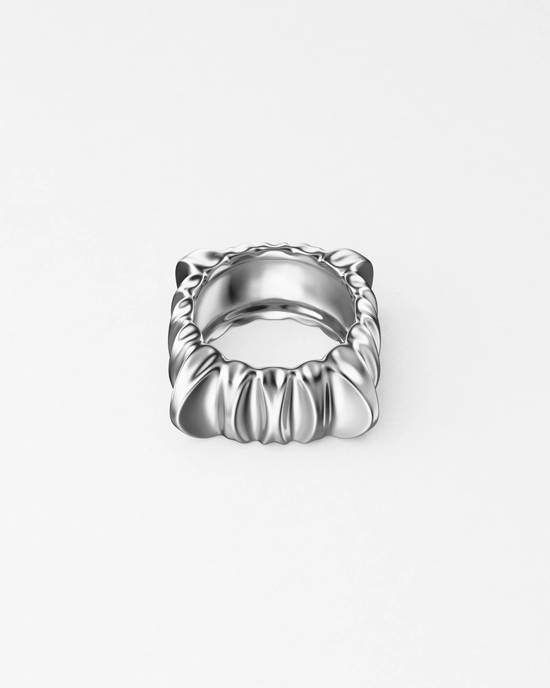 三つの面が融合し、予想外のフォルムを生み出す独創的なピンキーリング。