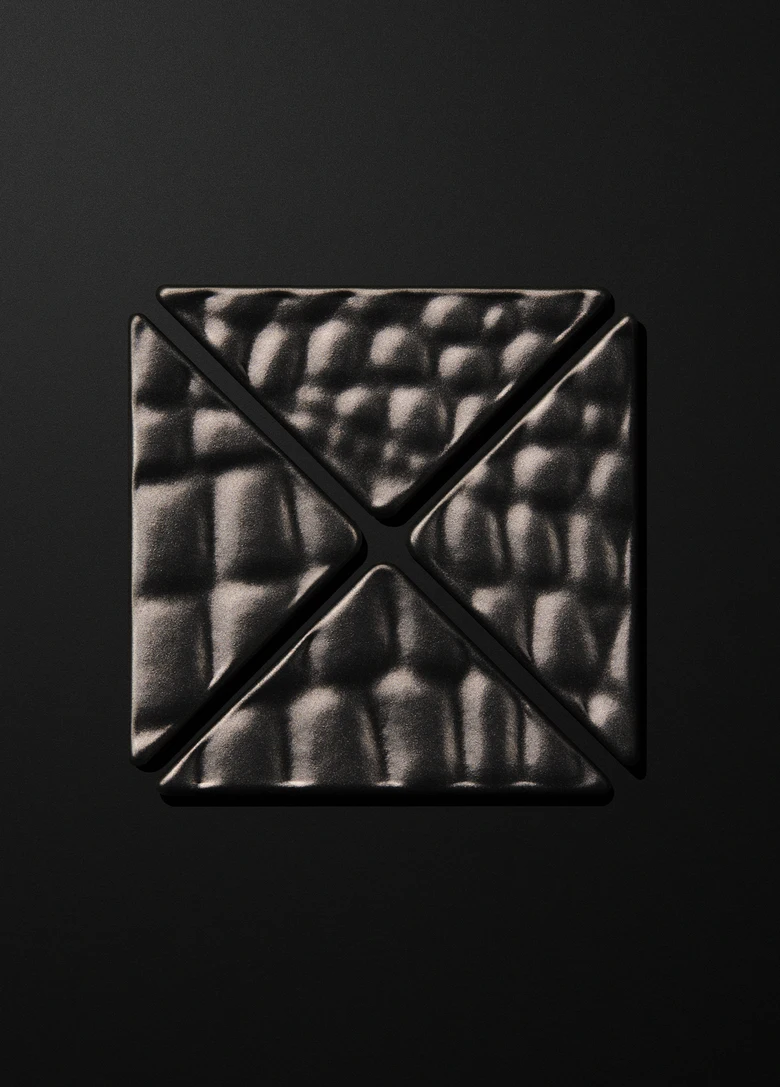 三角形のピースから生まれる立体造形の楽しさを進化させ、メタリックやワントーン、マットな質感など、秋冬の装いを引き立てる多彩なシリーズを展開する。