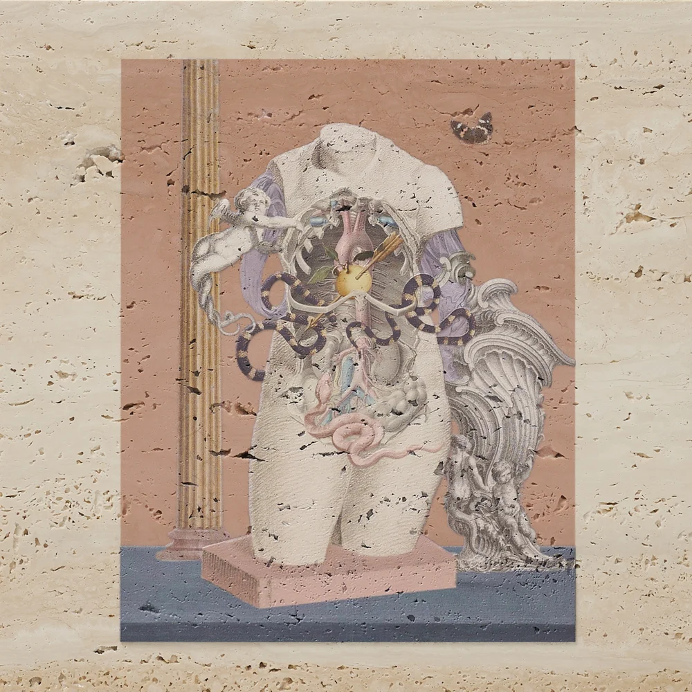 本展は、「Polyphony(多声性)ーあなたがもし、私だったらー」をテーマに掲げ、心と身体、自己と他者の関係性に光を当てた作品群を紹介する。古典彫刻を思わせるモチーフに、骨や臓器といった身体の内側を重ね合わせた大胆なモンタージュは、重厚な大理石や木材というマテリアルを用いながらも、どこかポップで軽やかに立ち上がる。