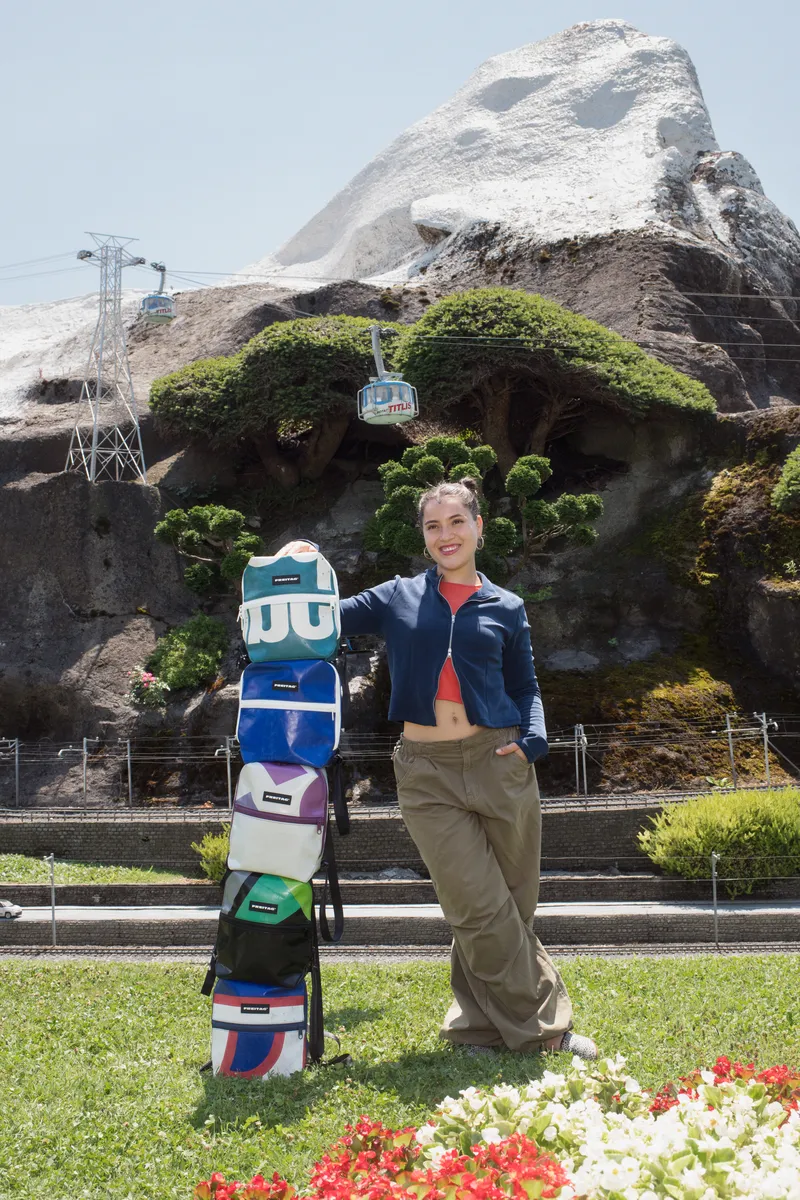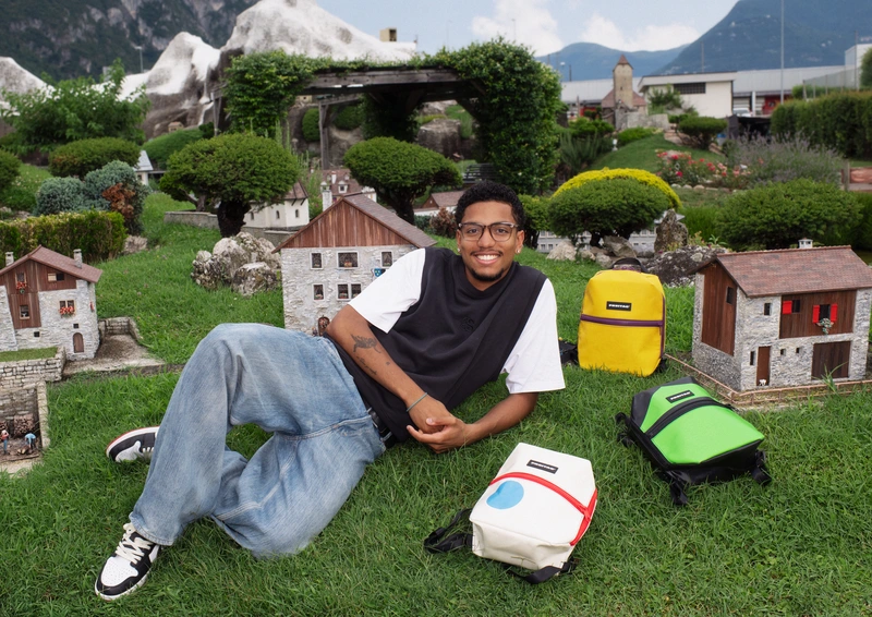 この新作は、人気モデル「F49 FRINGE」と同じデザインファミリーに属しており、リサイクルされたトラックタープとペットボトル素材から作られている。デザイナーはそれぞれのバッグに最適なジッパーカラーも選定しており、すべてが一点物のアップサイクル製品となっている。