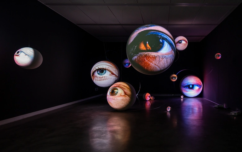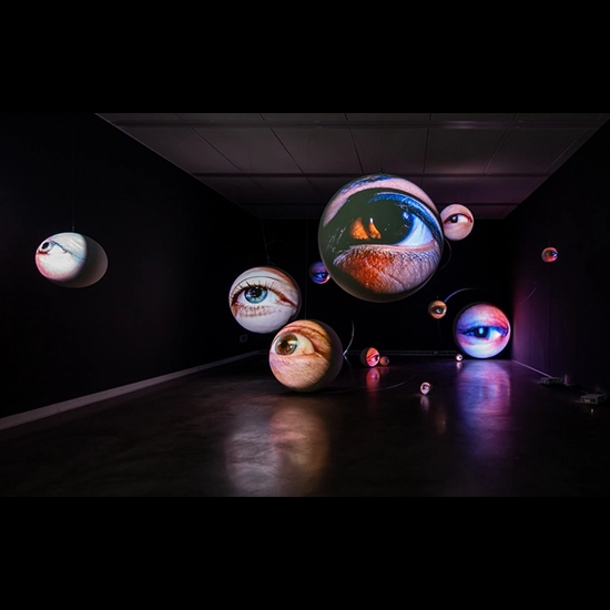 Tony Oursler. Open Obscura, 1996/2013. Installation view of Tony Oursler: Black Box, Kaohsiung Museum of Fine Arts, Kaohsiung, Taiwan, January 23–May 16, 2021. Courtesy Kaohsiung Museum of Fine Arts.