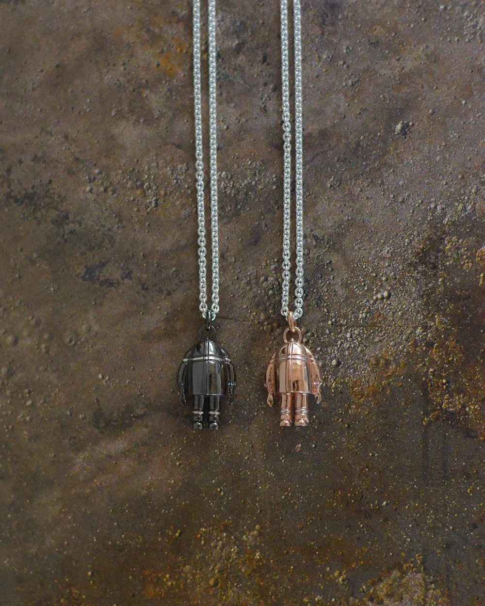 本作は、「六本木アートナイト2025」の開催期間にあわせて展開されるもので、Sablo Mikawaの代表作「Fire Man」をモチーフにしたシルバー925製のペンダントが登場。カラーはブラックとピンクの2色展開で、価格は各39,600円(税込)。アートとジュエリーが融合したユニークなデザインが特徴となっている。