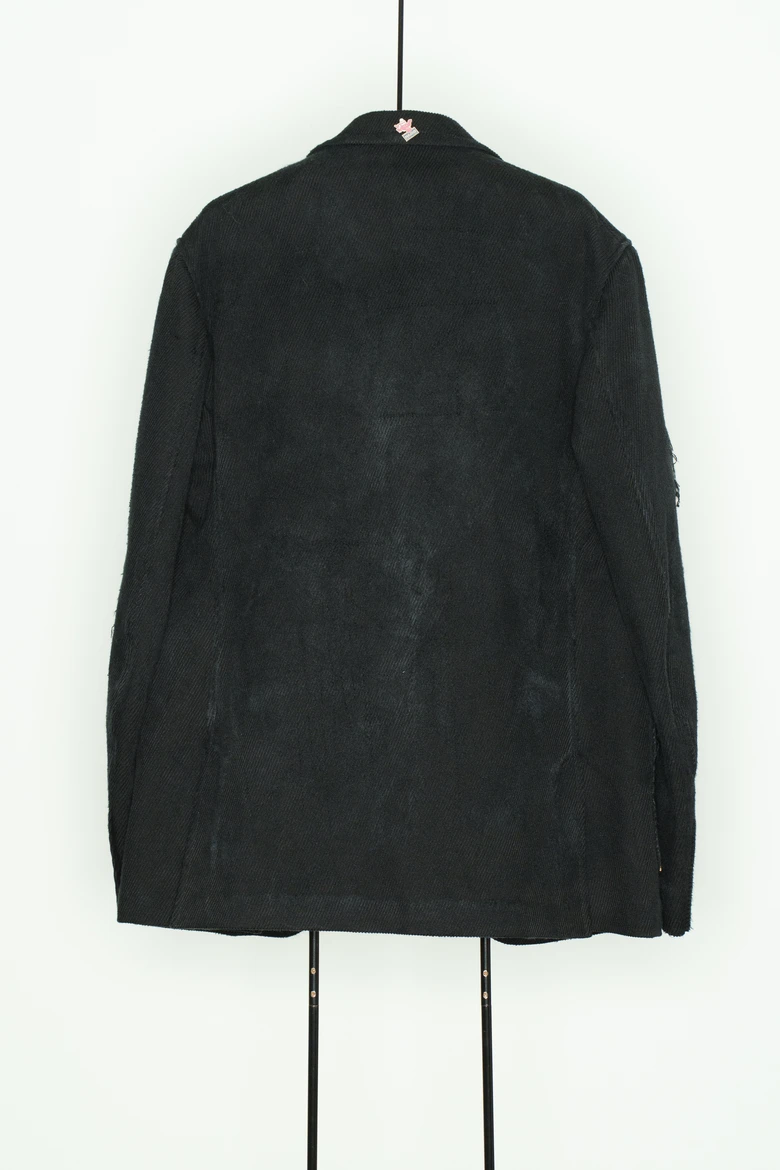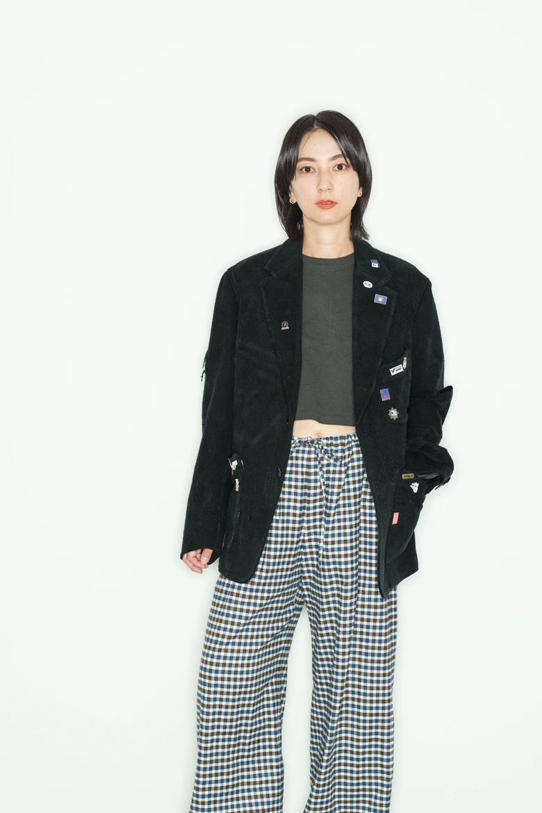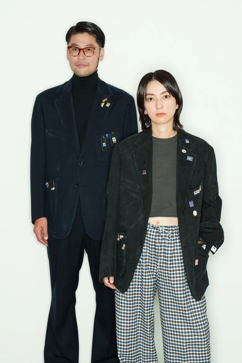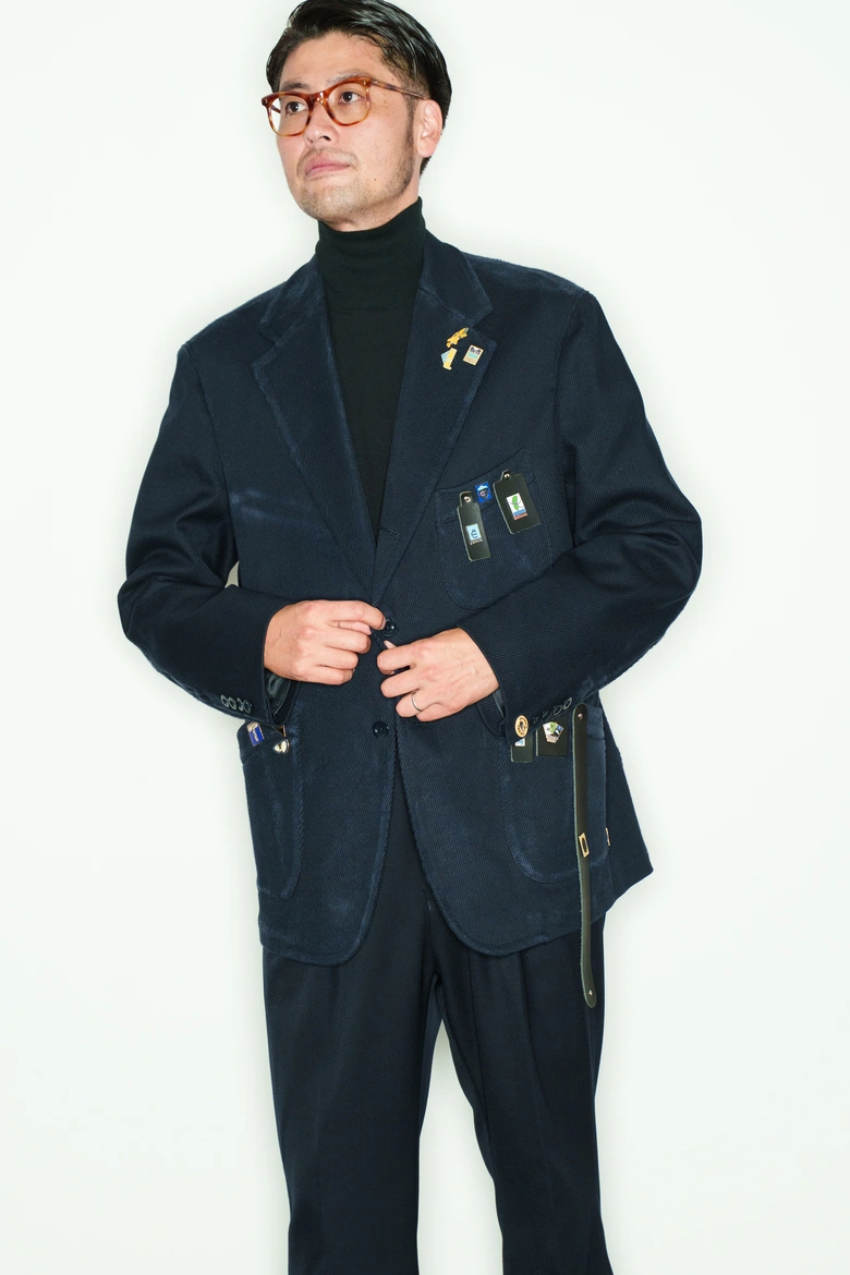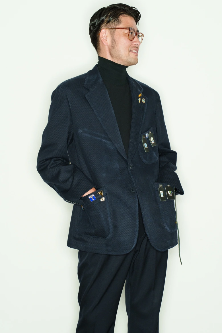 20世紀初頭の英国製スモーキングジャケットに端を発する<JACKET>の定番テーラードをベースに、リメークと希少素材を用いた2シリーズを展開する。JACKETディレクターの宮本哲明は「廃棄される素材や忘れ去られる存在をレスキューする考え方に共鳴し、互いの個性を投影させたジャケットシリーズを一緒に作ることになった」と語る。コットンカルゼの定番生地を軸に、着方次第でワークにもフォーマルにも振れる“シーズンレス”な姿が魅力である。