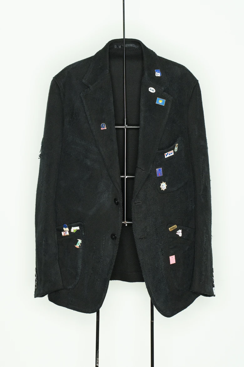 <YUTASETOGAWA>が<JACKET>の定番ジャケットをリメーク。ダメージ加工は瀬戸川自身の手仕事と国内工場加工をミックスし、欧州ヴィンテージのピンズやレザー製品製造時の余剰レザーパーツをスタッズで固定してレイアウト。初期生産分は各色1点ずつの通常販売、その後は受注生産で対応する。