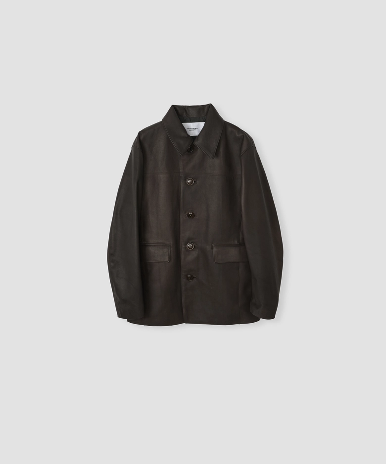 1930年代、車にエアコンが標準装備されていなかった時代に生まれたカーコートをデザインソースに、現代のライフスタイルに合う一着へ再構築。シンプルなコートを上品なコバステッチでアレンジし、二枚袖のパターンで立体的なシルエットと自然な可動性を確保。ボタンホールは両玉縁仕立て、力ボタンに牛革を用いるなど細部まで作り込み、左身頃に内ポケットを備えるなど実用性と耐久性にも配慮している。