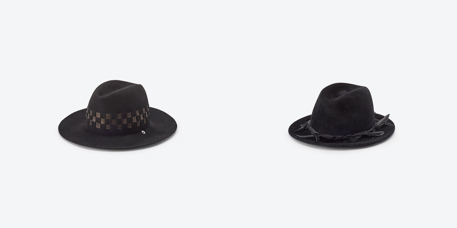 ビーバーフェルトやラビットファーなどの希少素材を用い、熟練の職人による手仕事で仕立てられた帽子は、アートピースとも呼べる完成度を誇る。フェドラハットにリザード革を編み込んだモデルや、羽根をグログランリボンにランダムに配した装飾など、唯一無二のクラフトマンシップが随所に光る。