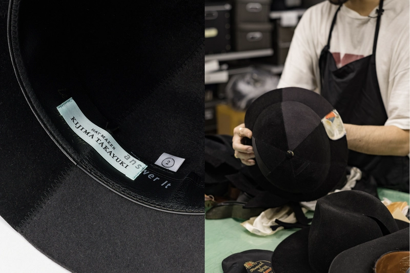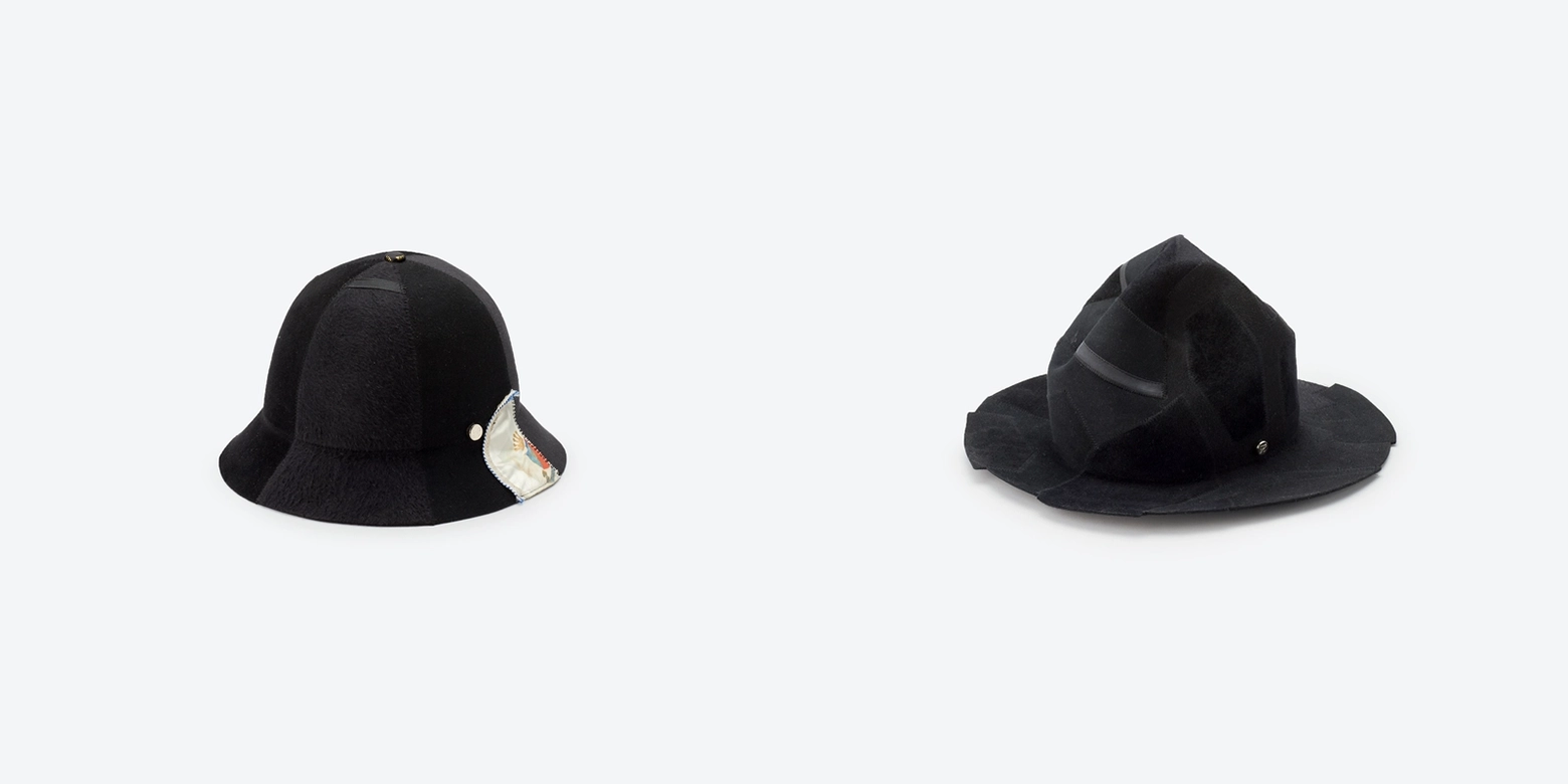 ヴィンテージ帽子の再構築をテーマに、形が崩れたり時代に合わなくなった帽子の可能性を見出し、素材との対話を重ねながら職人が丁寧に再生させている。端切れや裏地など既存の素材を即興的に組み合わせ、パッチワークのように仕立てることで、唯一無二の存在感を放つプロダクトが生まれている。